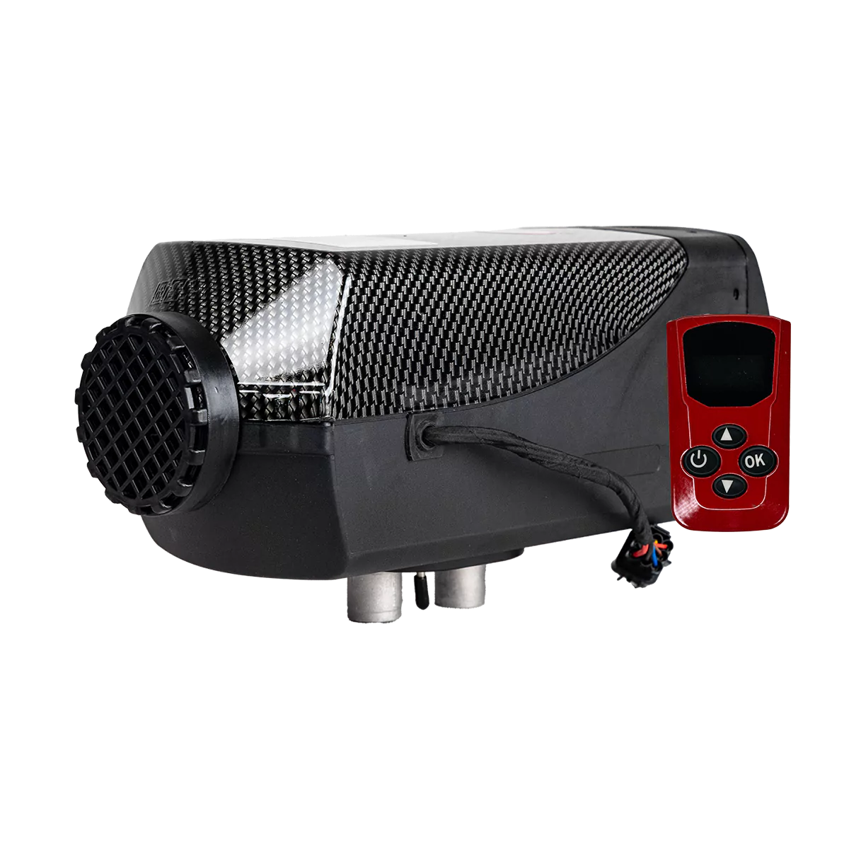 Nezávislé 12V topení s výkonem 5kW. Topení bez boxu jsou ideální pro trvalou instalaci ve vozidlech, dodávkách nebo karavanech. Nabízejí větší flexibilitu při instalaci, protože všechny díly topění jsou dodávány samostatně. To umožňuje například instalovat topení tak, aby bylo skryté, a umístit ovládací displej LCD na viditelné místo ve vozidle. Topení o výkonu 5kW je vhodný pro větší karavany nebo obytné vozy. U karavanů a dodávek běžné velikosti doporučujeme zvážit instalaci 2kw topení, aby nedocházelo k přehřívání prostoru. Pokud si nejste jisti, jaký výkon zvolit, neváhejte nás kontaktovat. Součástí balení je také dálkové ovládání s displejem.