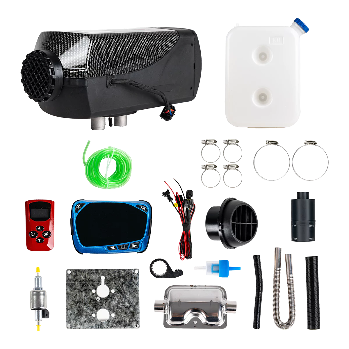| 1x Bezboxové topení (topné těleso, čerpadlo, LCD displej, 10l palivová nádrž, montážní deska, kabeláž) |